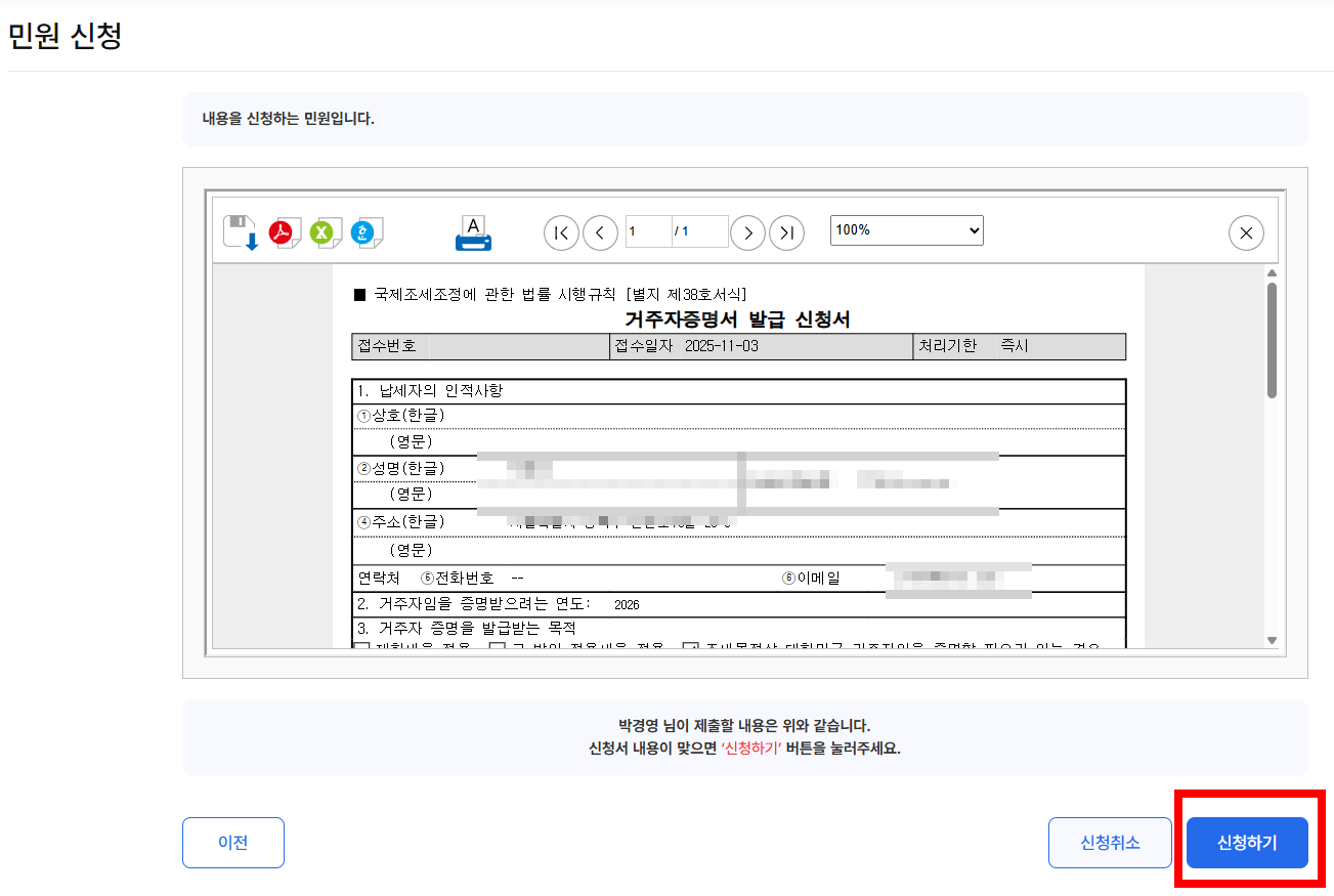 그럼 아래와 같이 미리보기화면이 나옵니다. 신청하기~