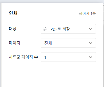 인쇄 설정화면이 나오면, 대상을 'pdf로 저장' 을 눌러주세요.