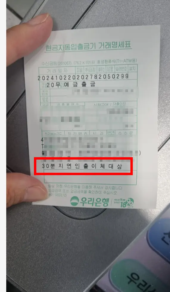 ATM 30분 지연인출이체대상 출금 안될때, 자동화기기 지연 인출제도 해지는?